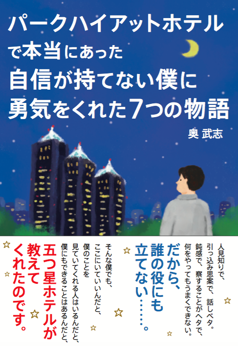 2014年に「パークハイアットホテルで本当にあった、自信が持てない僕に勇気をくれた7つの物語」を出版。アマゾンホテル部門第2位、ギフトで贈られているランキング第1位を獲得。
