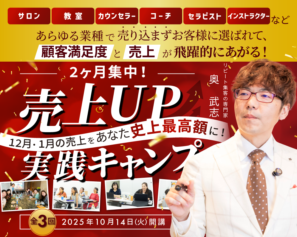 ・サロン、治療院、カウンセラー、コーチ、講師、コンサル、教室業、心理セラピストなど、業種は問いません